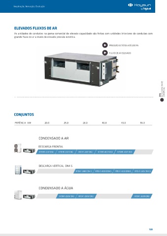 As unidades de condutas na gama comercial de elevada capacidade são feitas com unidades interiores de condutas com