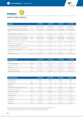 Capacidade de aquecimento (min./medida/max.) kW 0.82/2.93/3.87 0.88/4.10/5.13 1.29/5.57/6.98 2.08/7.62/9.44